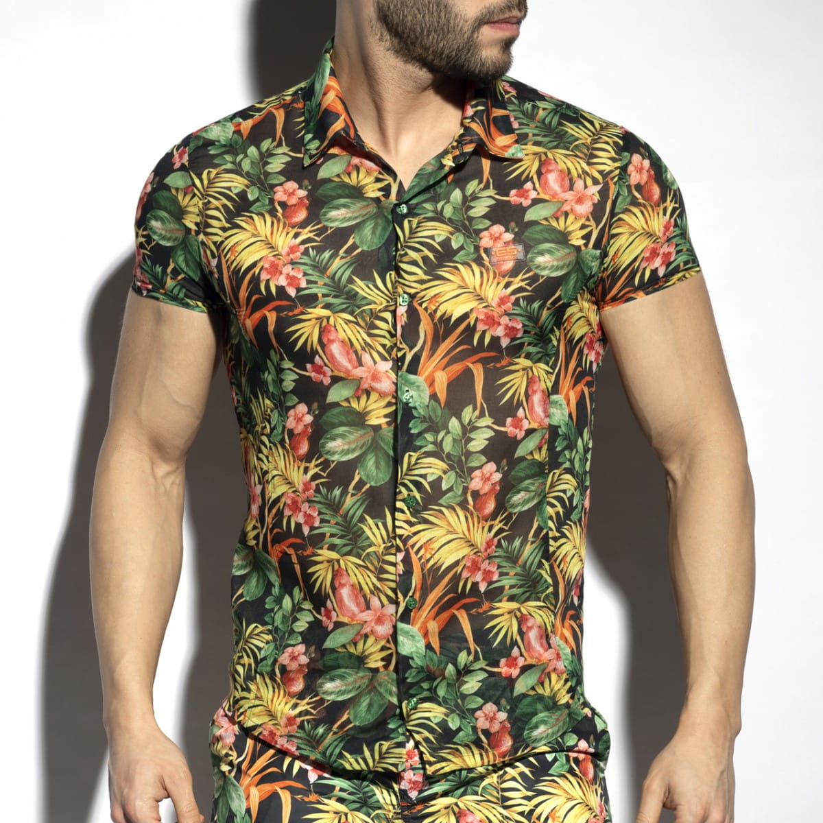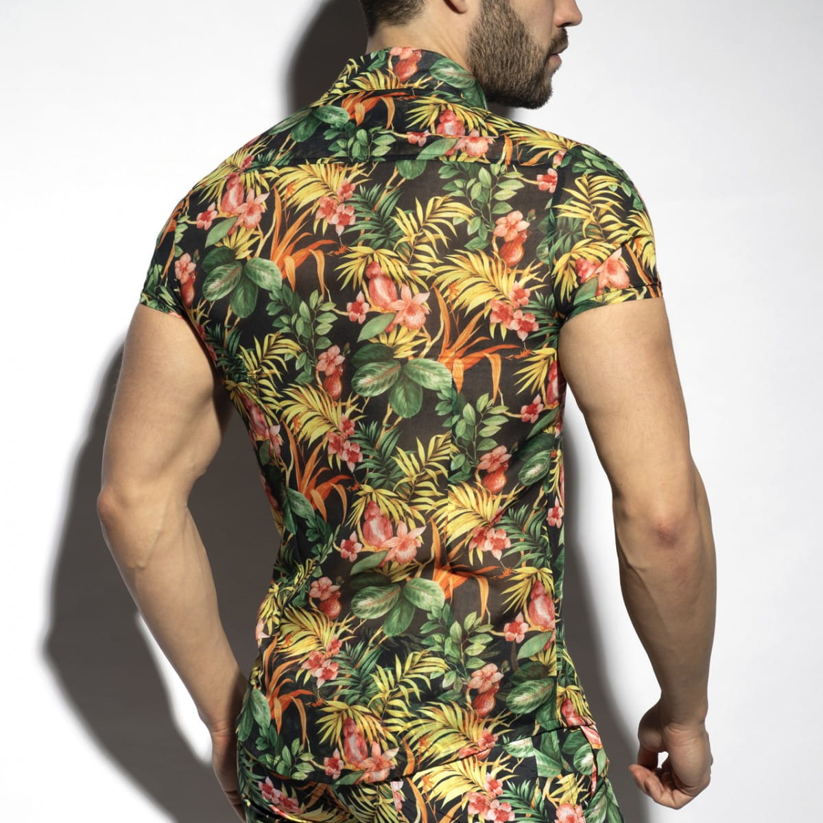 ES Collection men's Hawaiian shirt. Made of lightweight airy fabric. Decorative pocket on the left chest and small silicone ES logo.