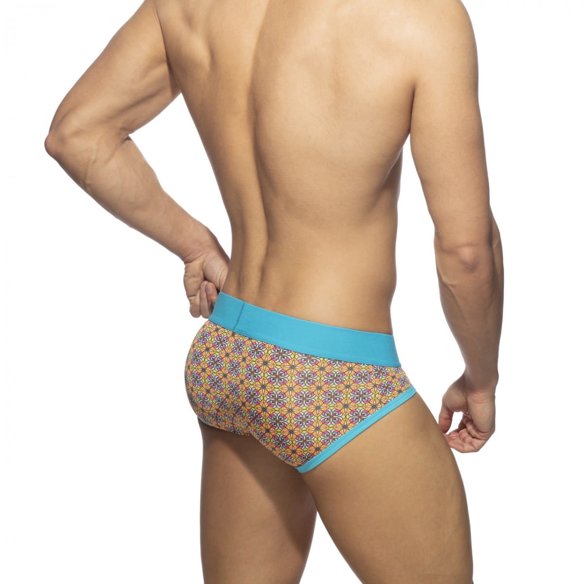 Innovative design and material used to ensure comfort both when swimming and when worn under clothing. Material with fast-drying Fast-Dry technology. On the front, a pocket with a push up system, i.e. a pocket for placing men's attributes, which lifts them up and brings them forward (this model does not have a PACK UP insert). The slip-bathing shorts fit perfectly to the body.